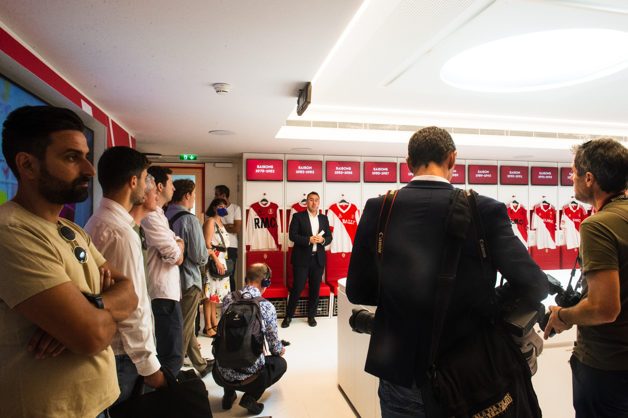 Devant la façade intérieure du bâtiment, une quarantaine de médias s’étaient donné rendez-vous pour suivre au plus près les festivités. Ils ont d’abord pu découvrir l’ensemble du domaine à travers une visite guidée effectuée par James Bunce, Directeur de la Performance de l’AS Monaco.
