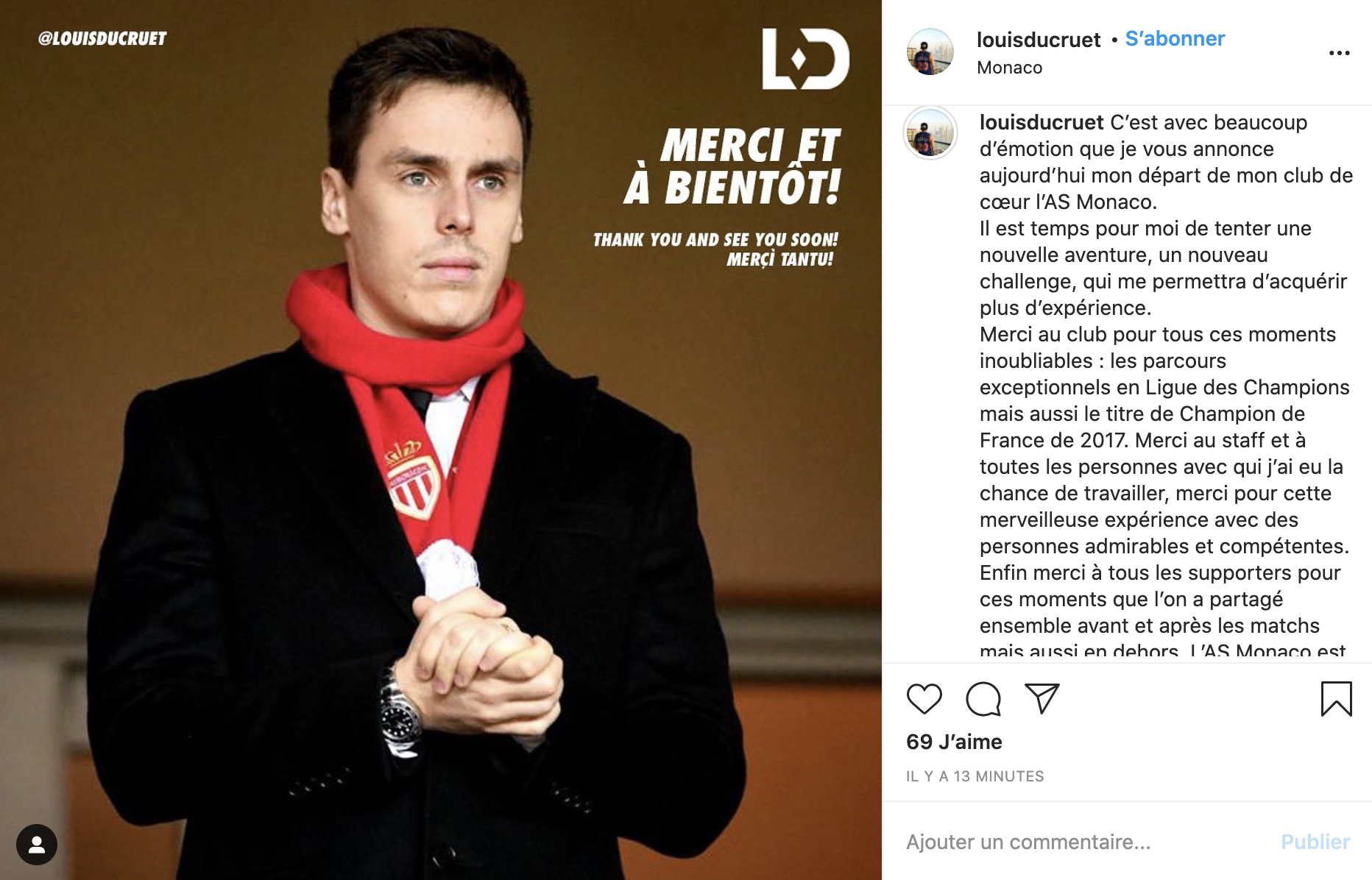 Après plusieurs expériences à l’AS Monaco qui l’ont mené au département commercial, au sein de la cellule recrutement puis au poste d’assistant du Vice-président Directeur Général, Louis Ducruet, 27 ans, s’apprête à ouvrir une nouvelle page professionnelle.