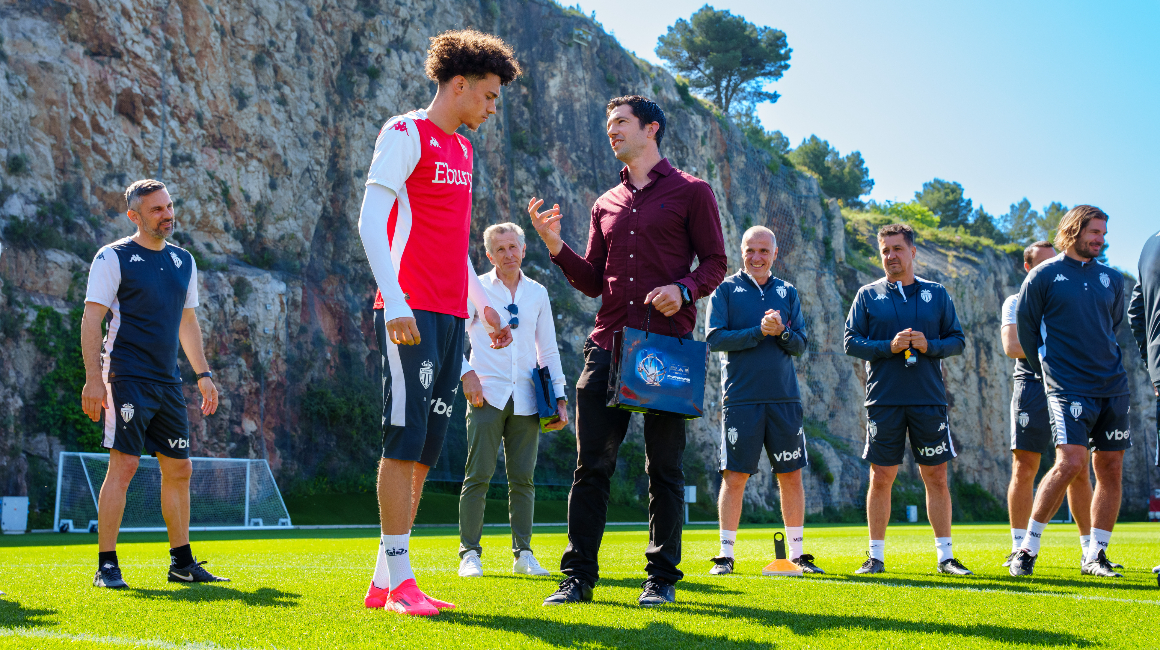 Ils seront finalement trois Monégasques lors de la cérémonie des Trophées UNFP, le dimanche 11 mai prochain. Après Eliesse Ben Seghir, nommé pour être le meilleur Espoir, et Adi Hütter, en course pour le meilleur Entraîneur, c’est au tour de Maghnes Akliouche d’être en lice pour remporter le Trophée Just Fontaine, visant à récompenser le plus beau but de la saison. Une nomination remise en main propre par Vincent Muratori, joueur du Club entre 2001 et 2012 et aujourd'hui membre de l'UNFP.