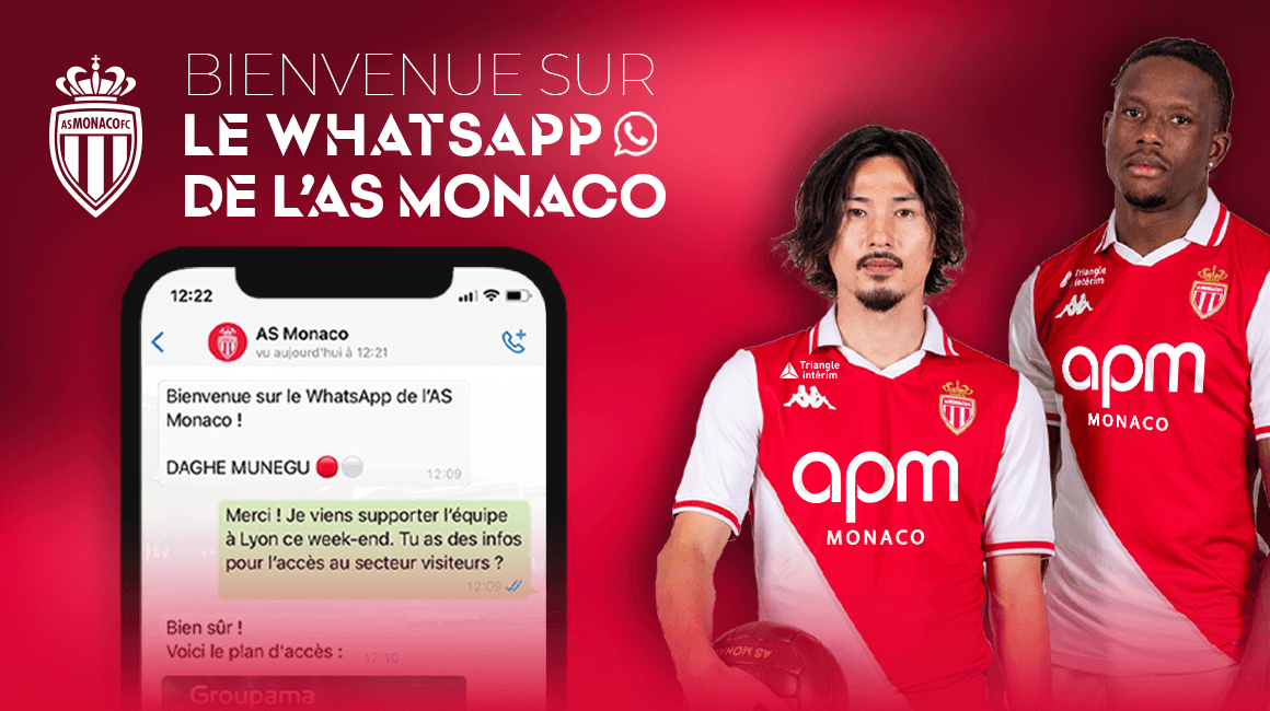 Pour rappel, l’AS Monaco a mis en place un fil de conversation WhatsApp pour te permettre d’avoir toutes les informations utiles pour venir supporter l’équipe au Stade Louis-II, comme à l’extérieur. Pour rejoindre ce groupe, voici la marche à suivre !