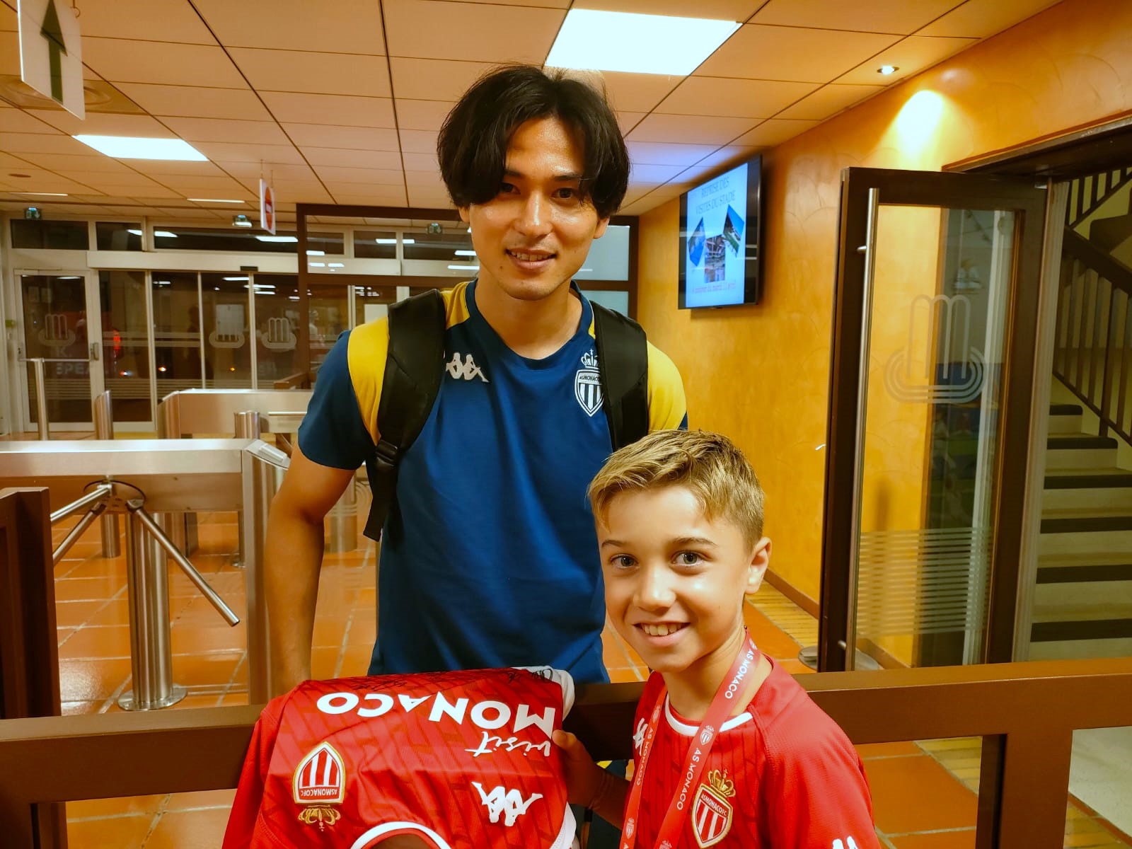 Aux abords du rectangle vert, le jeune garçon observe religieusement et les yeux grands ouverts, l’échauffement des joueurs de l’AS Monaco, situés à seulement quelques mètres de lui. Timidement et surtout impressionné par l’événement, il reconnaît évidemment ses joueurs préférés : Caio Henrique et Aleksandr Golovin !