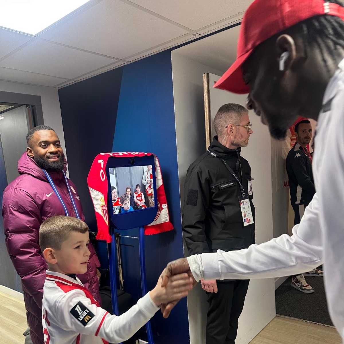 Soutenus par l'Association Adrien, qui accueille dans une Maison d’Accueil Hospitalière (MAH), basée à Pegomas, des enfants malades et leur famille pendant leurs soins ou en période de repos, les deux jeunes fans monégasques ont pu saluer l'ensemble de la délégation Rouge & Blanche à son arrivée au Parc des Princes, grâce à un robot Awabot fourni par la Fondation PSG.