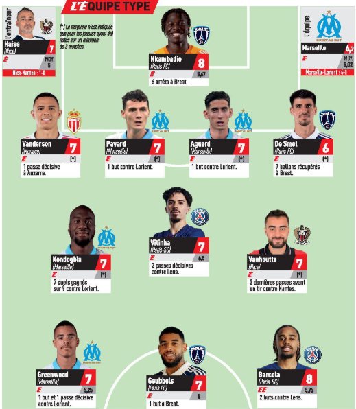Une performance solide pour le numéro 2 qui lui vaut ainsi d’avoir été noté 7 par le journal L’Équipe et de figurer dans l'Équipe type du quotidien sportif pour la première fois de la saison, entouré entre autres de Bradley Barcola, Benjamin Pavard ou des deux anciens monégasques Geoffrey Kondogbia et Willem Geubbels.Bravo Vandi ! 🇧🇷