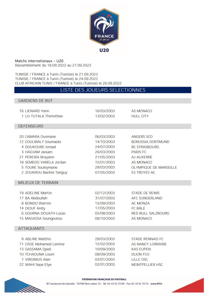 Une belle récompense pour la jeune garde monégasque. Car si le défenseur latéral est désormais un habitué des sélection ( 11 capes en EDF U19), il s’agit d’une grande première pour "Soungou". L’occasion pour eux de se frotter à la Tunisie, lors d’une double confrontation, avant de rencontrer la réserve du Club Africain de Tunis.Daghe les jeunes !