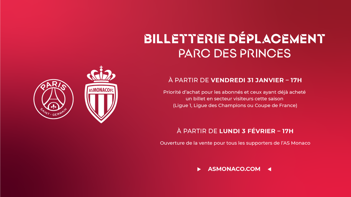 - A partir de lundi 3 février – 17h : Ouverture de la vente pour tous les supporters de l’AS Monaco.