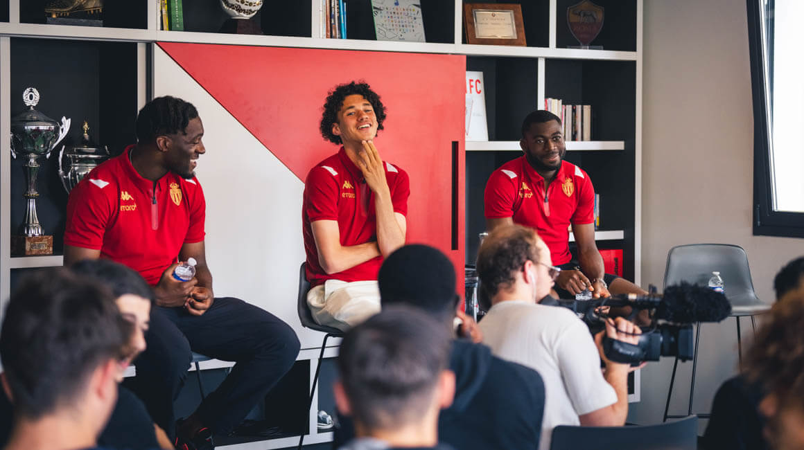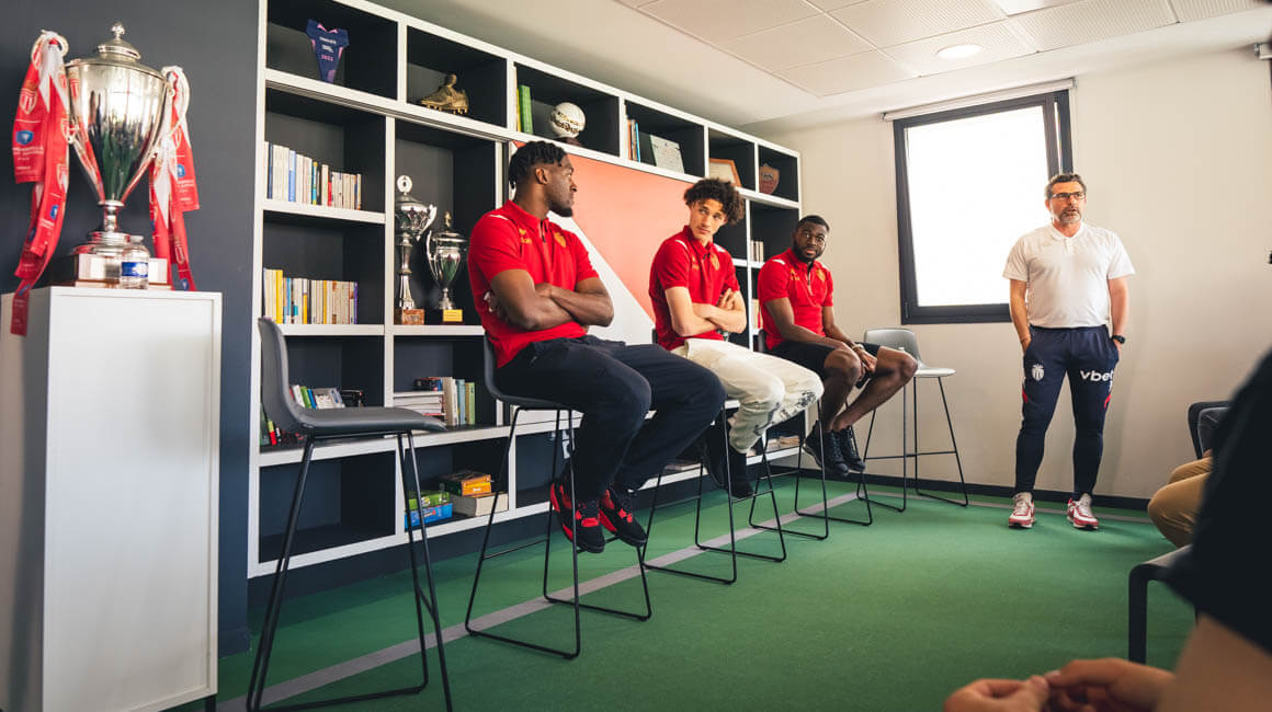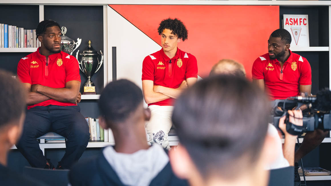 Axel Disasi, Youssouf Fofana et Maghnes Akliouche ont en effet passé une partie de l’après-midi aux côtés des U17 de Manu Dos Santos. Un moment privilégié pour ces derniers, au cours duquel ils ont pu aborder avec leurs trois visiteurs de nombreux sujets en lien avec la préparation invisible.