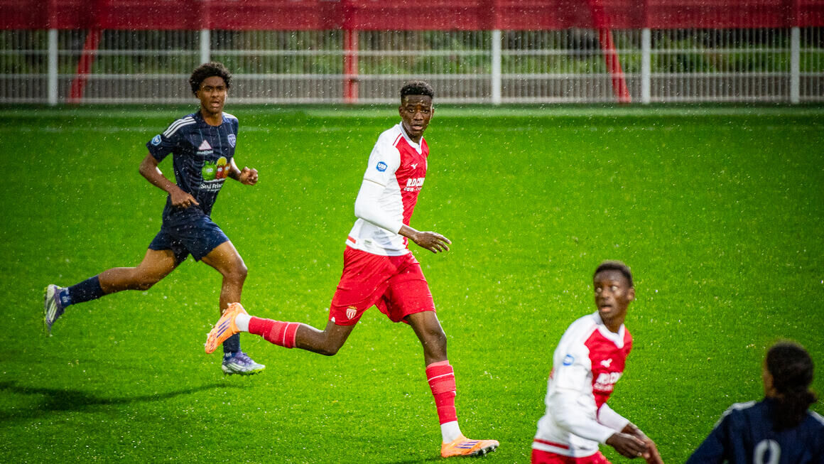 Buteur puis passeur décisif, Ajroud a par la suite trouvé la tête de Yannick Dodo (photo ci-dessus) au second poteau. Auteur d’un doublé, ce dernier a fait trembler les filets pour le 5e match consécutif ! Un but décisif qui ouvre la voie des play-off et place l’AS Monaco en excellente position pour l’obtention de la première place du Groupe D, laquelle serait synonyme de quart de finale à domicile le 17 mai prochain… Une chose est certaine, c’est un fin de saison passionnante qui attend les U19 monégasques !