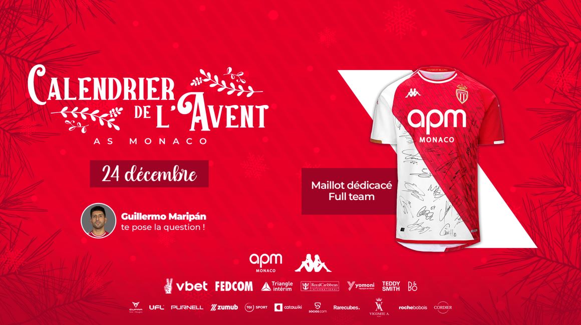 Noël approche à grands pas et les Rouge et Blanc ont décidé de te faire plaisir durant tout le mois de décembre ! 🎄 En effet, du 1er au 24, le club de la Principauté va se muer en Père Noël avant l'heure pour t’offrir de nombreux cadeaux. Pour les remporter, il n’y a rien de plus simple, tu n’auras qu’à ouvrir quotidiennement les cases du calendrier de l’Avent sur asmonaco.com !