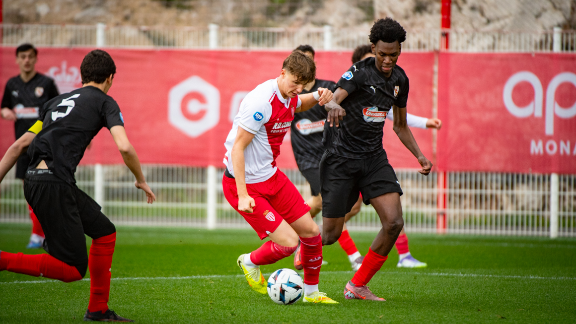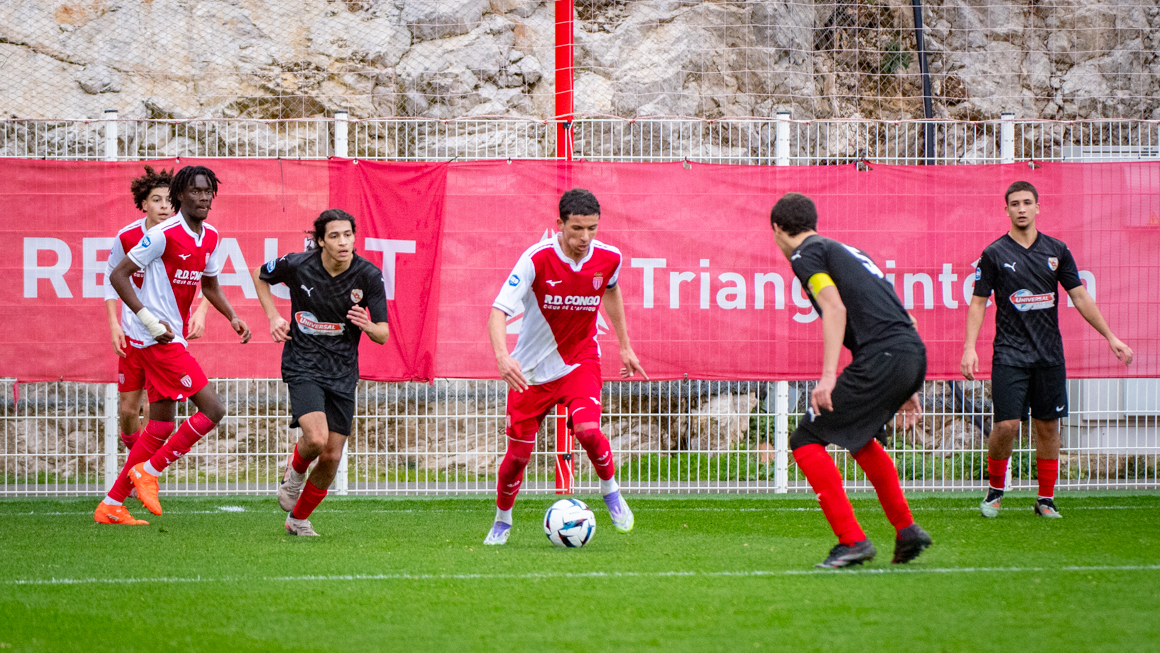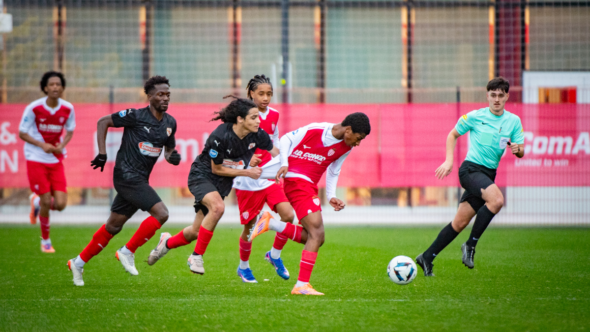 Après les déceptions des éliminations successives en Coupe Gambardella (défaite 0-1 contre Nice le 31 janvier) et en Youth League (défaite 3-2 à Bruges le 3 février), le Championnat National U19 reprenait ses droits ce dimanche. L'enjeu était très simple pour l'AS Monaco face à l'Olympique Rovenain : renouer avec la victoire et ainsi conserver la première place du Groupe D. Cela a pris un peu de temps, mais la mission a été accomplie avec brio.