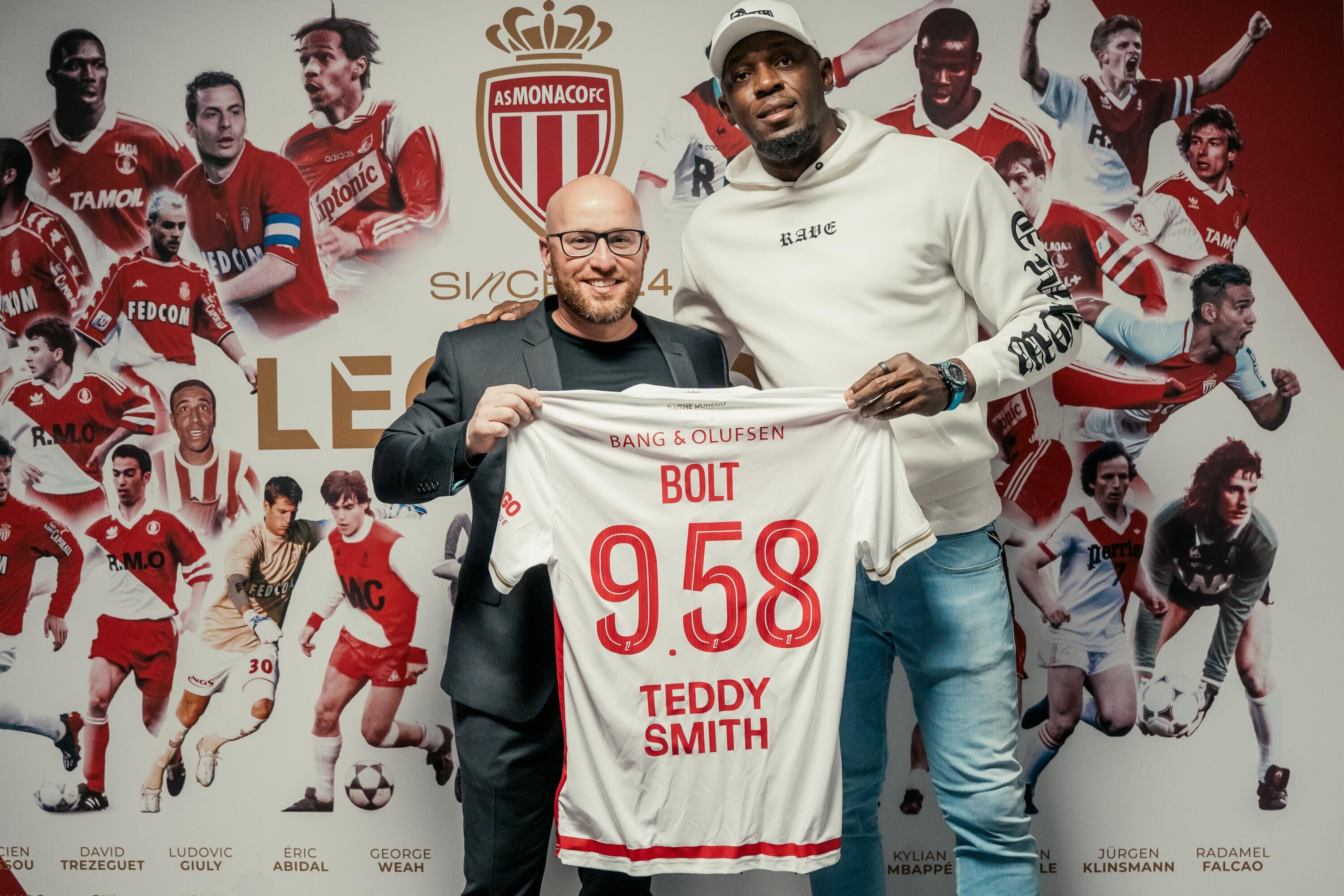 Après ce bain de foule, direction les entrailles de l’enceinte de Fontvieille, où Thiago Scuro, directeur général de l’AS Monaco, a remis au sprinteur jamaïcain un maillot du Club arborant symboliquement l’inscription « BOLT – 9.58 ».