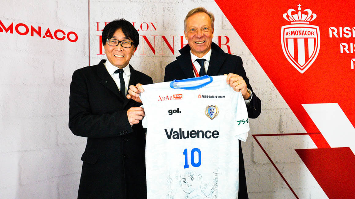 L’auteur d’Olive et Tom, l’un des mangas les plus lus de la planète avec 80 millions d’exemplaires vendus, a, en retour, offert à l’AS Monaco un maillot du Nankatsu SC, club dont il est récemment devenu propriétaire, lui qui est originaire de cette ville située dans la banlieue de Tokyo.