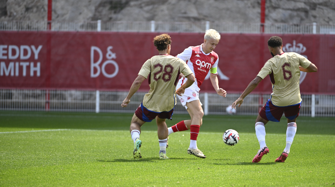 Per questa prima partita di preparazione, il tecnico austriaco ha schierato la sua squadra con un 4-2-3-1 con Thilo Kehrer e Wilfried Singo in difesa centrale. Aleksandr Golovin si è posizionato a centrocampo con Mohamed Camara, appena dietro a Félix Lemarechal, schierato come trequartista. I biancorossi sono partiti bene e hanno avuto il pallino del gioco.