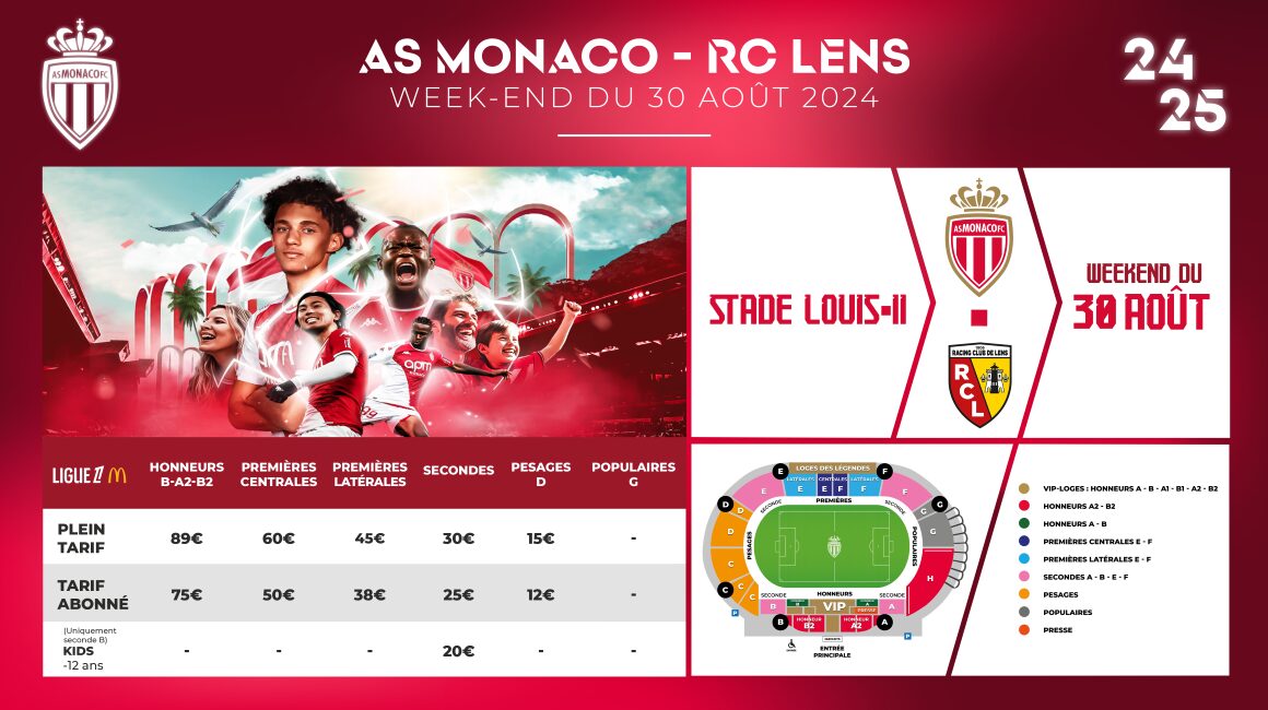 Le due squadre si affronteranno per una seconda volta. Dopo la trasferta di Lione, l'AS Monaco ospiterà il Lens allo Stade Louis-II nel weekend del 31 agosto. L'obiettivo? Ottenere lo stesso risultato della scorsa stagione , quando i monegaschi vinsero per 3-0. Per pura coincidenza, questa partita si svolgerà nello stesso periodo della stagione 2023-2024. Quindi, se desideri supportare la squadra per portarla a vincere nuovamente contro il Lens, acquista il biglietto presso la biglietteria online.