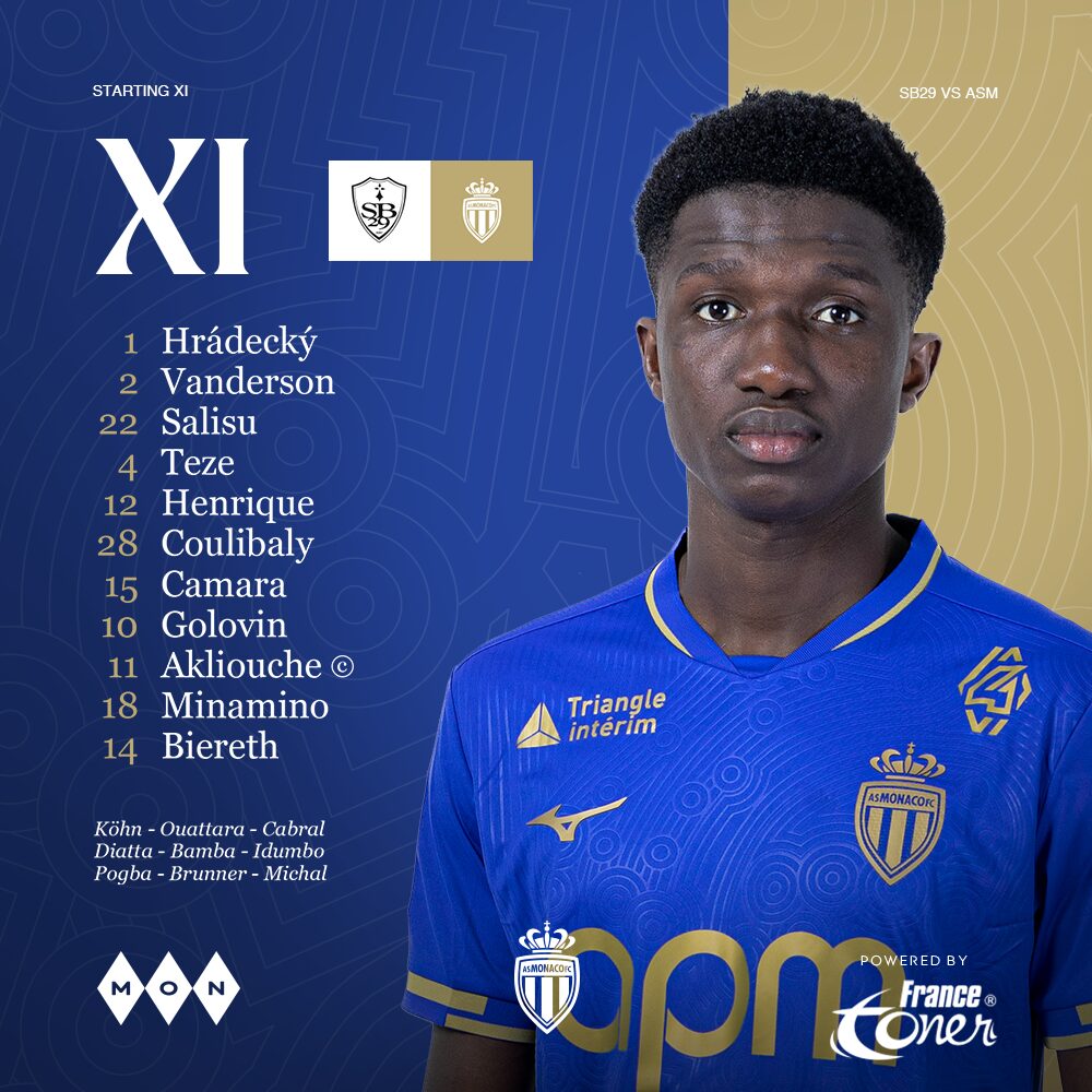 AS Monaco:Hradecký – Vanderson (Diatta, 83e), Teze, Salisu, C.Henrique – Coulibaly (Pogba, 69'), Camara (Michal, 77') – Akliouche ©, Minamino (Brunner, 77'), Golovin (Idumbo, 68') – Biereth