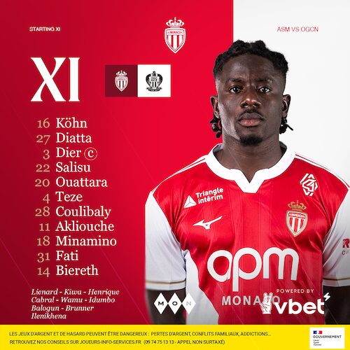 AS Monaco: Köhn - Diatta, Dier ©, Salisu, Ouattara (C.Henrique, 70') - Akliouche, Teze, Coulibaly (Balogun, 46'), Minamino (Idumbo, 70') - Biereth (Ilenikhena, 69'), Fati