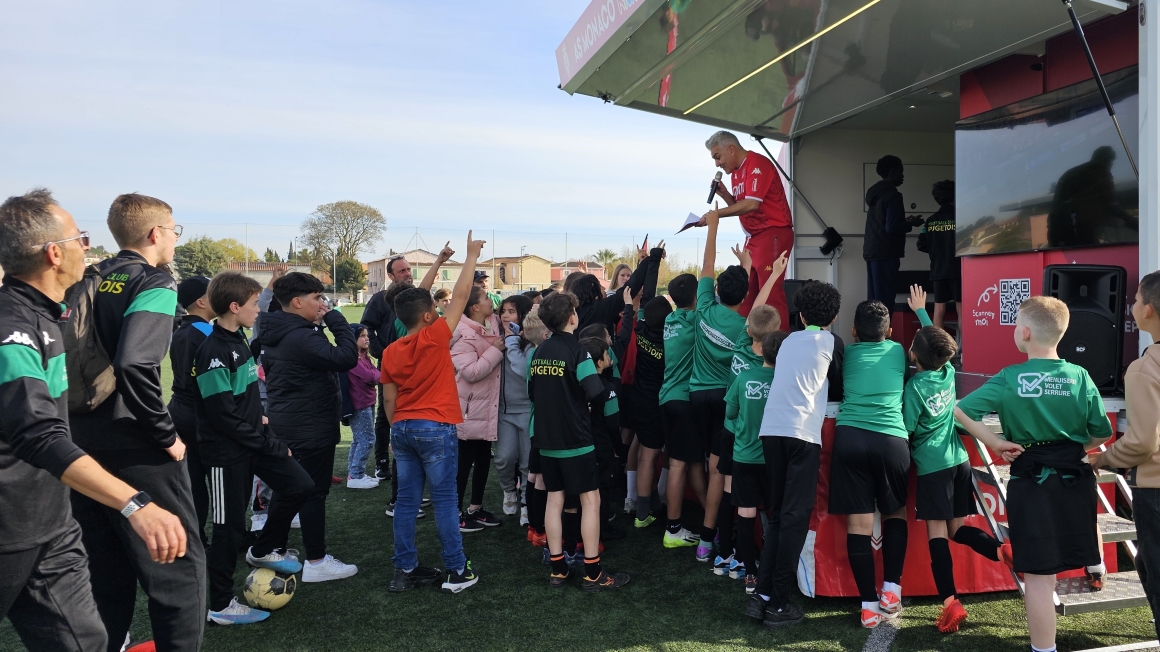 Organisée en collaboration avec le FC Pugetois, cette 19ème étape de la saison a permis à une centaine de licenciés du club local de profiter des animations du Kids Tour ! Rencontre ave la mascotte Bouba, concours de précision sur la cible géante, quiz sur l’AS Monaco, partie de FC 24 sur console… durant toute l’après-midi les couleurs Rouge & Blanche ont plané au-dessus du stade Camille Muffat !