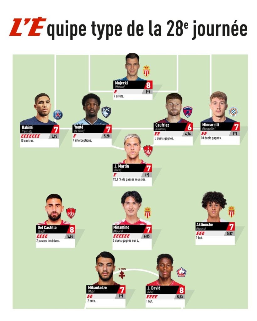 L’AS Monaco bien représenté dans l’Équipe type de la 28e journée