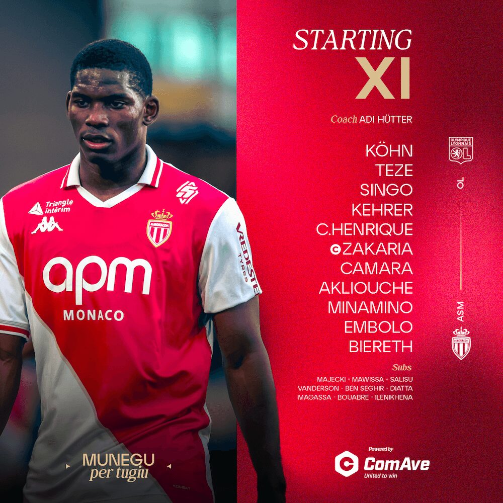 Pour faire face à ce défi de taille, Adi Hütter opte pour la stabilité en faisant confiance à son schéma en 4-4-2. A noter que Thilo Kehrer retrouve sa place dans l’axe, tandis que Jordan Teze conserve la sienne dans le couloir droit. Enfin, le duo Biereth-Embolo est aligné sur le front de l’attaque monégasque.