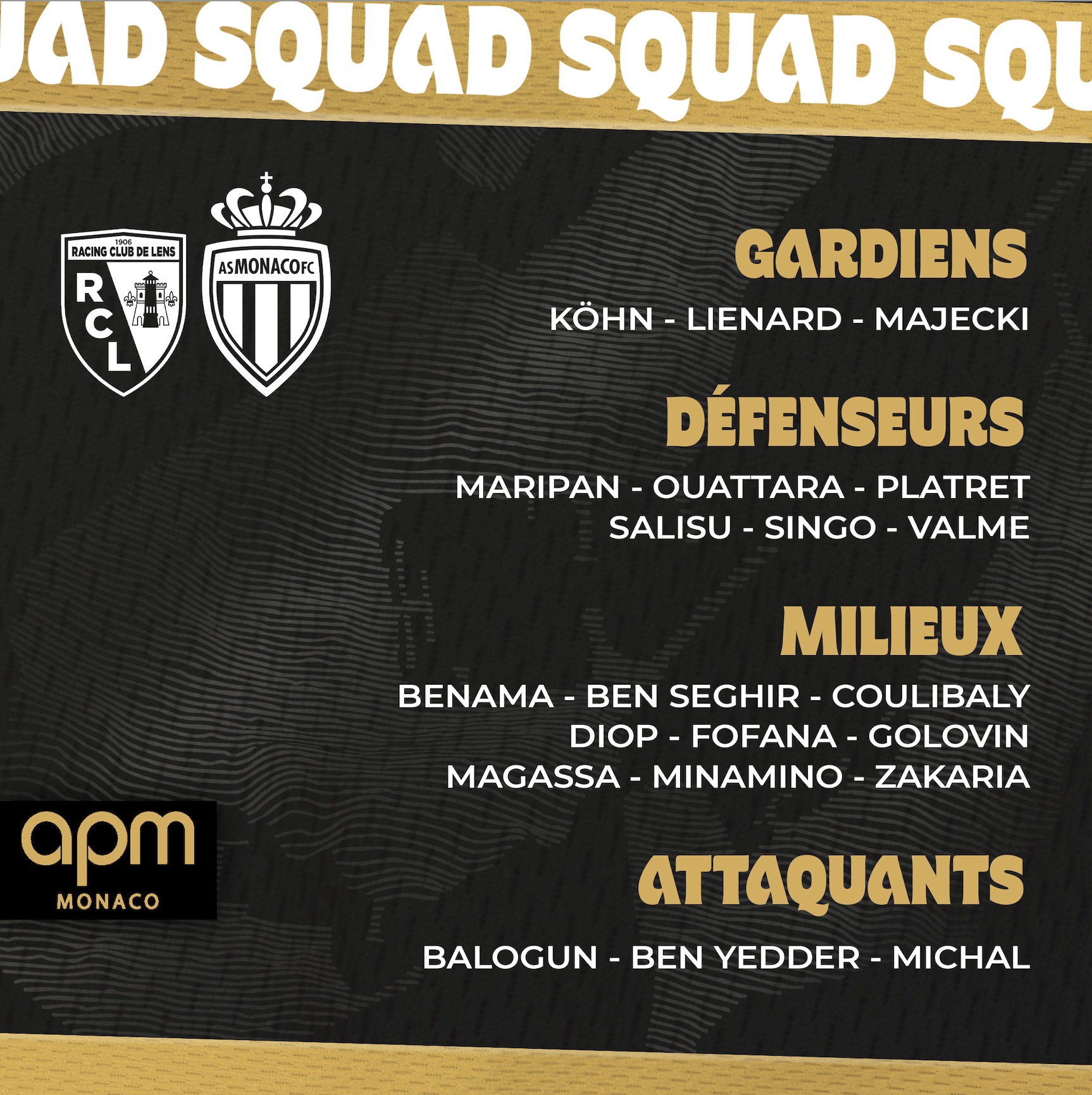 👥 Le groupe de l’AS Monaco 🆚 Lens