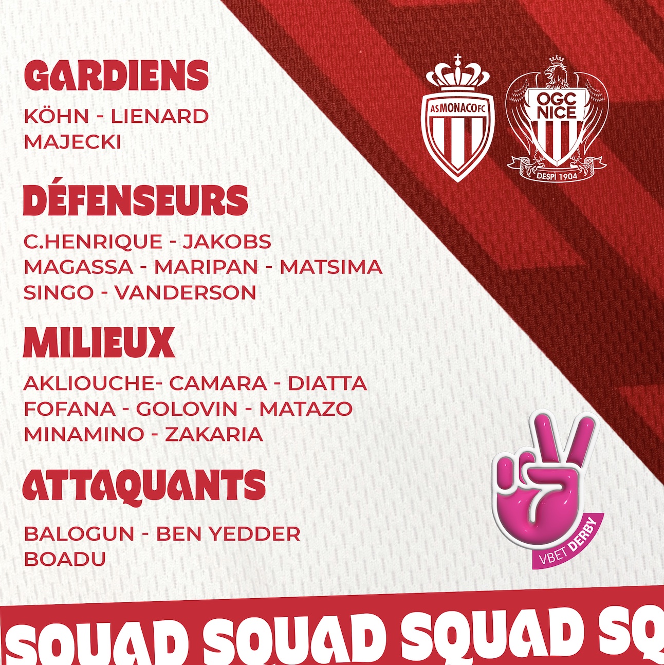Le groupe de l’AS Monaco 🆚 Nice :
