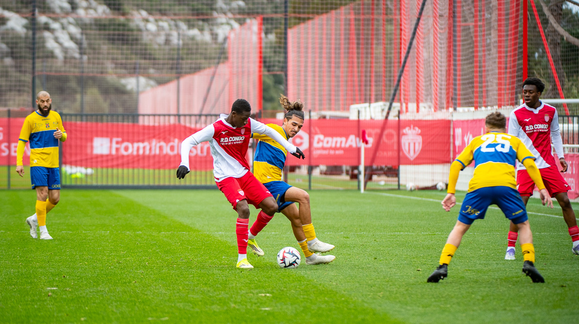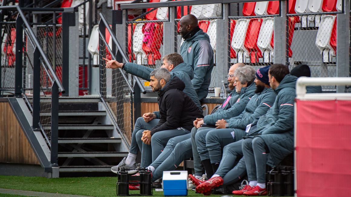 Passée cette alerte, c’est un début de match plutôt équilibré qui s’est déroulé sur le terrain n°1 du Centre de Performance. Au quart d’heure de jeu, les Rouge et Blanc ont eu un temps fort qu’Ilies Belmokhtar n’est pas passé loin de concrétiser. Malheureusement sa tentative depuis l’entrée de la surface n’a pas trouvé le cadre. À la 19e minute, Boubacar Dembaga, victime d’un léger malaise, a été remplacé par Joan Tincres.