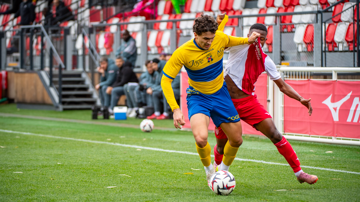 Ce dernier a ensuite tenté d’alerter son avant-centre, Kamel Bennekrouf, d’un long dégagement, mais celui-ci a été sévèrement chargé par Kevin Sitou qui a récolté un avertissement (33e). Avant la pause, un centre tendu de Joan Tincres a été repoussé plein axe par le gardien, mais aucun joueur monégasque n’a pu en profiter. À la pause, le score demeurait donc nul et vierge.