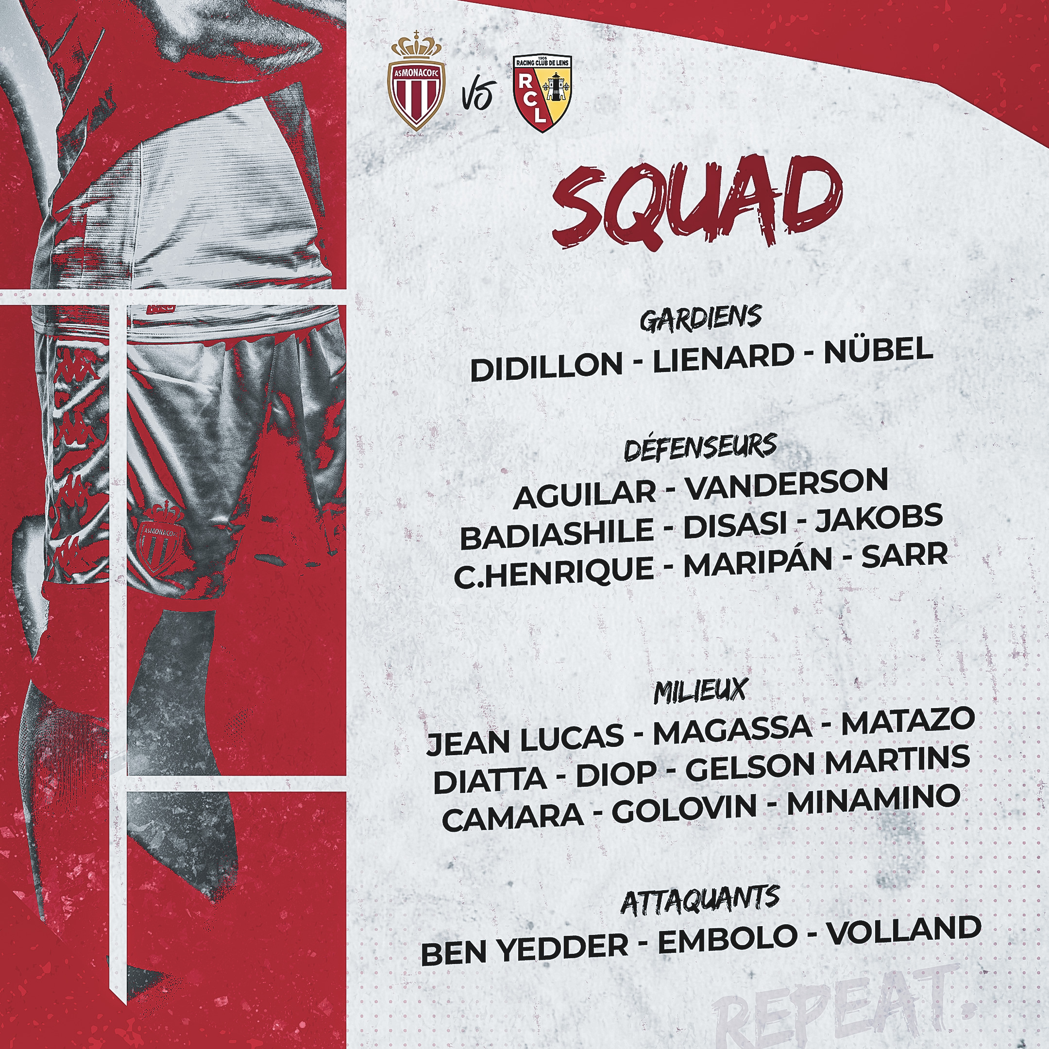 Le groupe monégasque pour l'affiche face au RC Lens