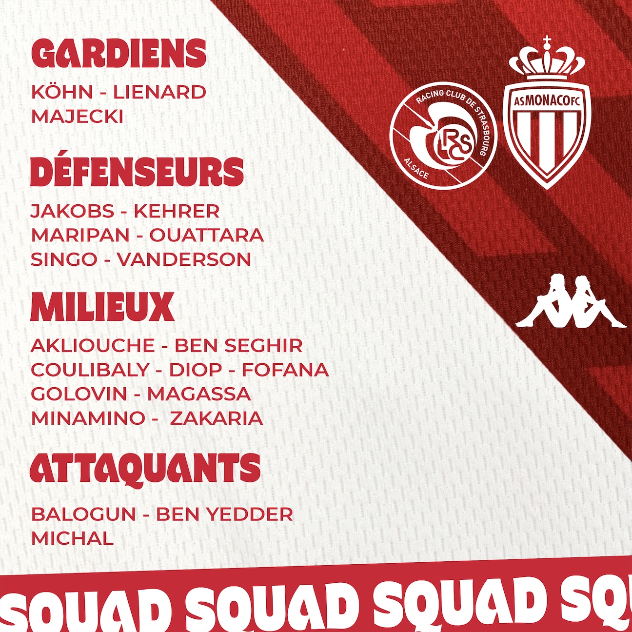 👥 Le groupe de l’AS Monaco 🆚 Strasbourg