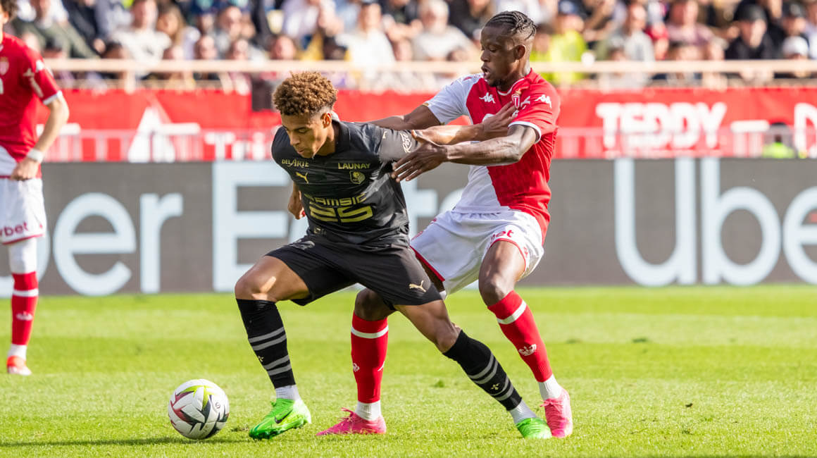 Le club du Rocher fait mal en contre, et sur une bonne déviation de Balogun pour Maghnes Akliouche, Julien Le Cardinal fait faute et hérite d’un carton jaune. Bon coup franc à suivre… 🟨