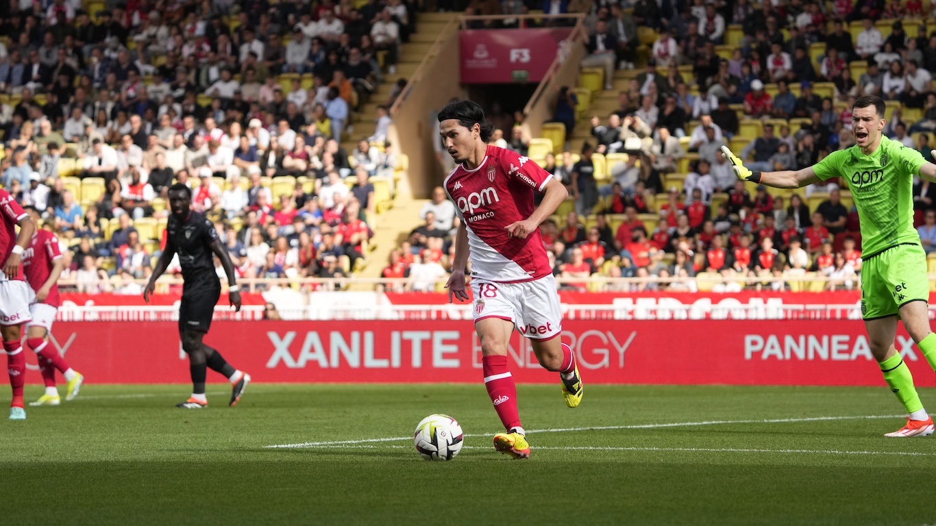 C’est la pause ici au Stade Louis-II, les hommes d’Adi Hütter mènent d’un but face à une formation clermontoise très sérieuse. Takumi Minamino et Breel Embolo sont les buteurs, AS Monaco 2 -1 Clermont.