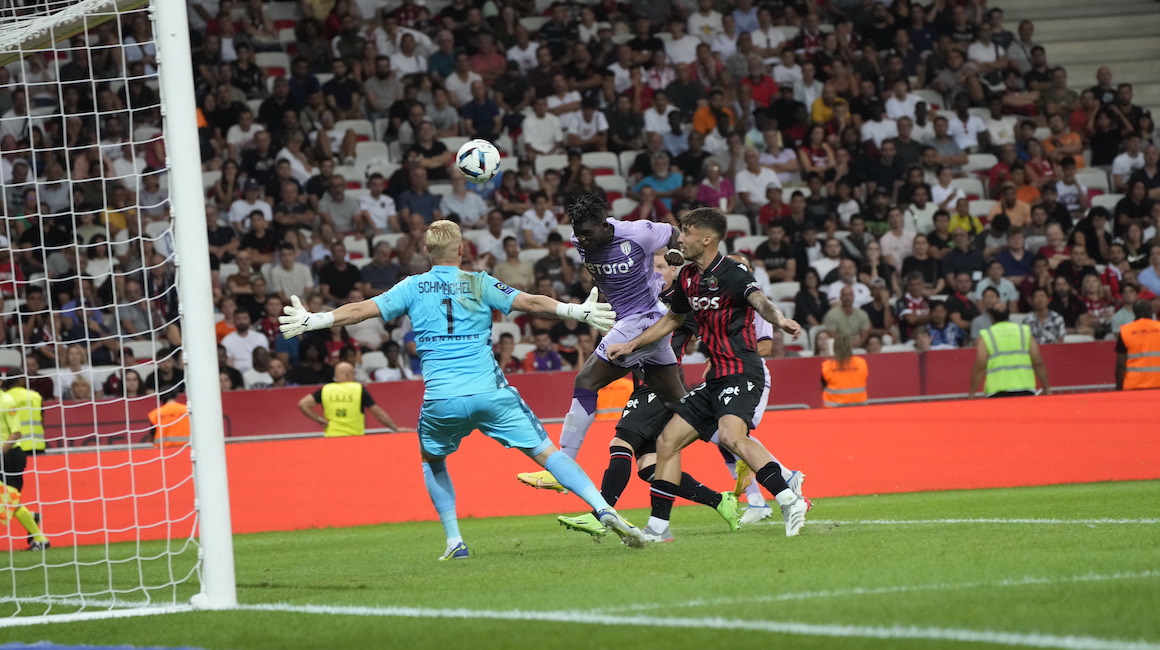 📐 Quelques instants plus tard, l’AS Monaco obtient un corner. Frappé par Eliesse Ben Seghir, il trouve la tête de Chrislain Matsima. Gêné, il ne parvient pas à l’ajuster.