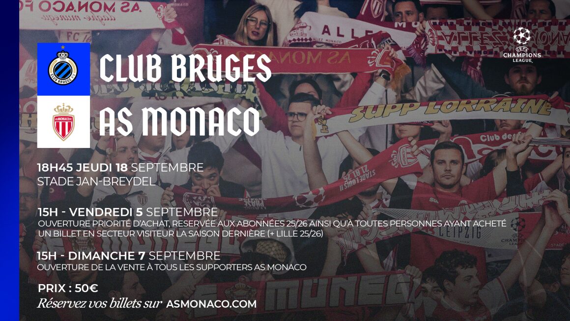 Alors donc, ne perds pas de temps et viens prendre ta place sur la billetterie en ligne du Club. A noter qu’une priorité d’achat est offerte jusqu’à ce dimanche 15h pour les abonnés 2025-2026, ainsi qu’à toute personne ayant acheté un billet en secteur visiteurs la saison dernière ou à Lille. Passé ce délai, la billetterie sera ouverte à tous les supporters de l’AS Monaco.