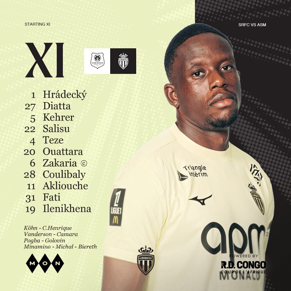 Remplaçants : Köhn, Lienard, C.Henrique, Vanderson, Cabral, Camara, Golovin, Minamino, Pogba, Biereth, Michal