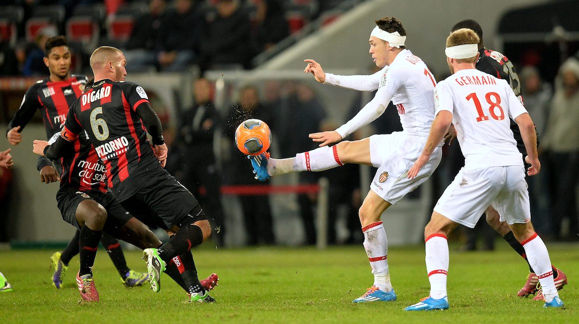 C’est dans le froid que les deux équipes s’affrontent à l’occasion du premier Derby depuis la saison 2010-11. Pourtant, les Monégasques vont vite réchauffer l’atmosphère ! Emmenés par un James Rodriguez étincelant, les hommes de Claudio Ranieri prennent les devants dès la 5ème minute par l’intermédiaire du génial colombien. Ultra dominateurs, les Rouge et Blanc vont définitivement éteindre les 28.000 niçois présents ce jour-là par l’intermédiaire d’Emmanuel Rivière, auteur d’un but exceptionnel de la tête 18 minutes plus tard.