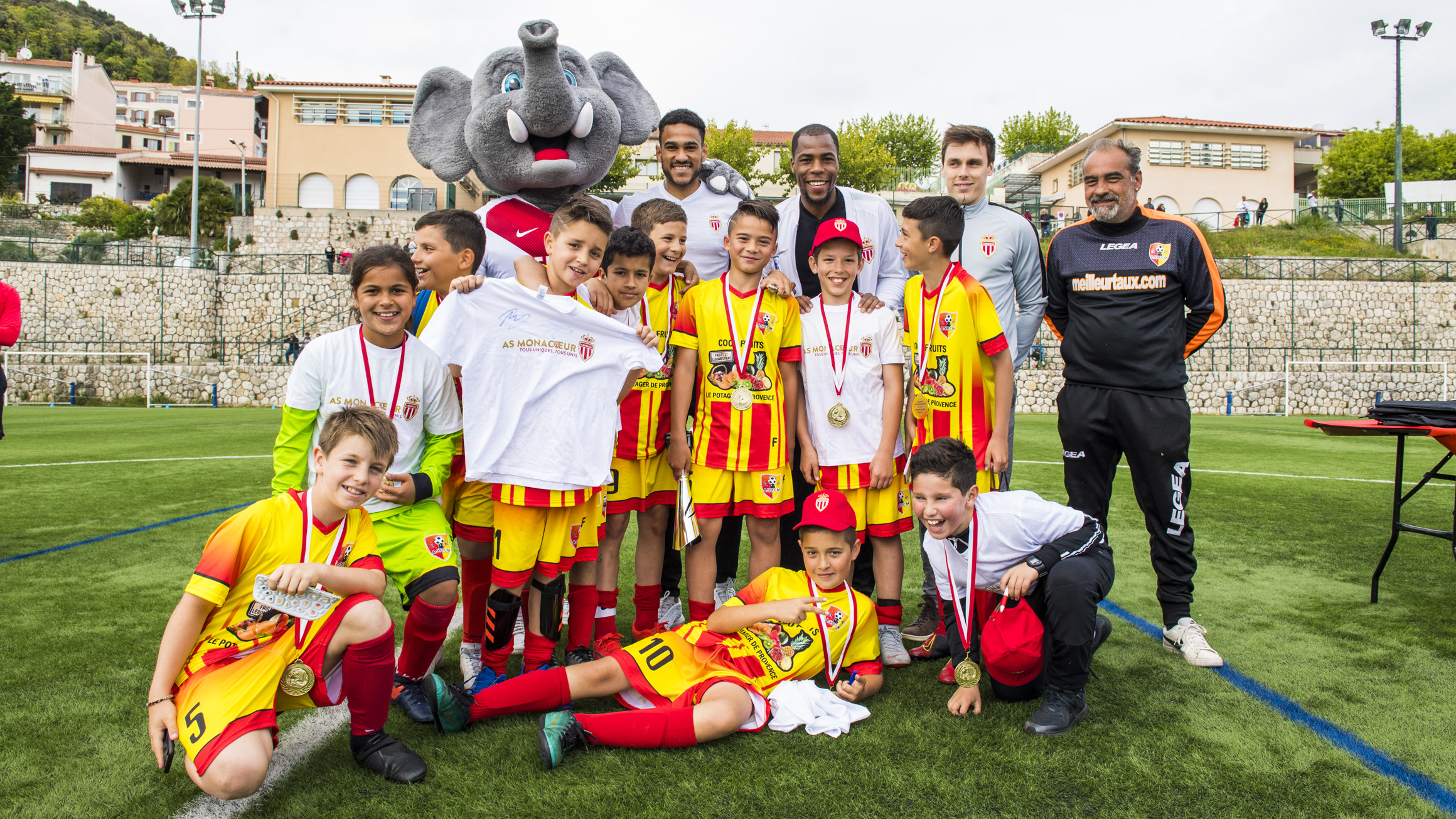 Louis Ducruet, assistant du Vice-président directeur général Oleg Petrov, Djibril Sidibé et Jordi Mboula ont remis une médaille à tous les apprentis footballeurs ainsi que la coupe aux vainqueurs. Ils ont ensuite passé de longues minutes à échanger, pour le plus grand bonheur des enfants.