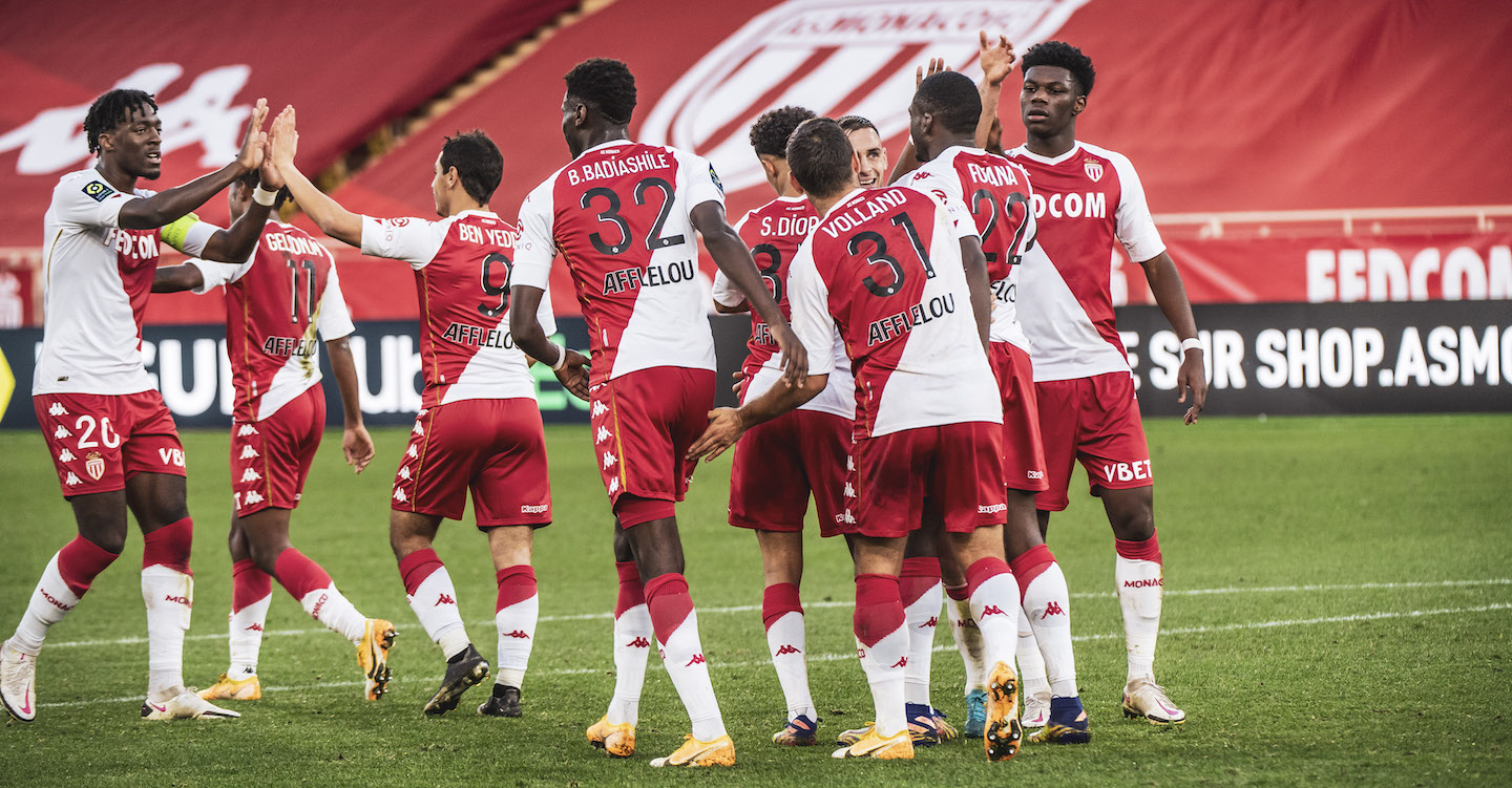 (2-й тур)«Мец» 0–1 «Монако»: Бенжамен Лекомт (1)(3-й тур)«Монако» 2–1 «Нант»:Софиан Диоп ( 1)(5-й тур)«Монако» 3–2 «Страсбур»: Рубен Агилар и Виссам Бен-Йеддер (1)(9-й тур) «Монако» 4-0 «Бордо»:Виссам Бен-Йеддер (2), Кайо Энрике и Кевин Фолланд ( 1)(10-й тур)«Ницца» 2-1 «Монако»: Юссуф Фофана ( 1)(11-й тур)«Монако» 3-2 «ПСЖ»:Юссуф Фофана (2), Желсон Мартинш и Нико Ковач (1)