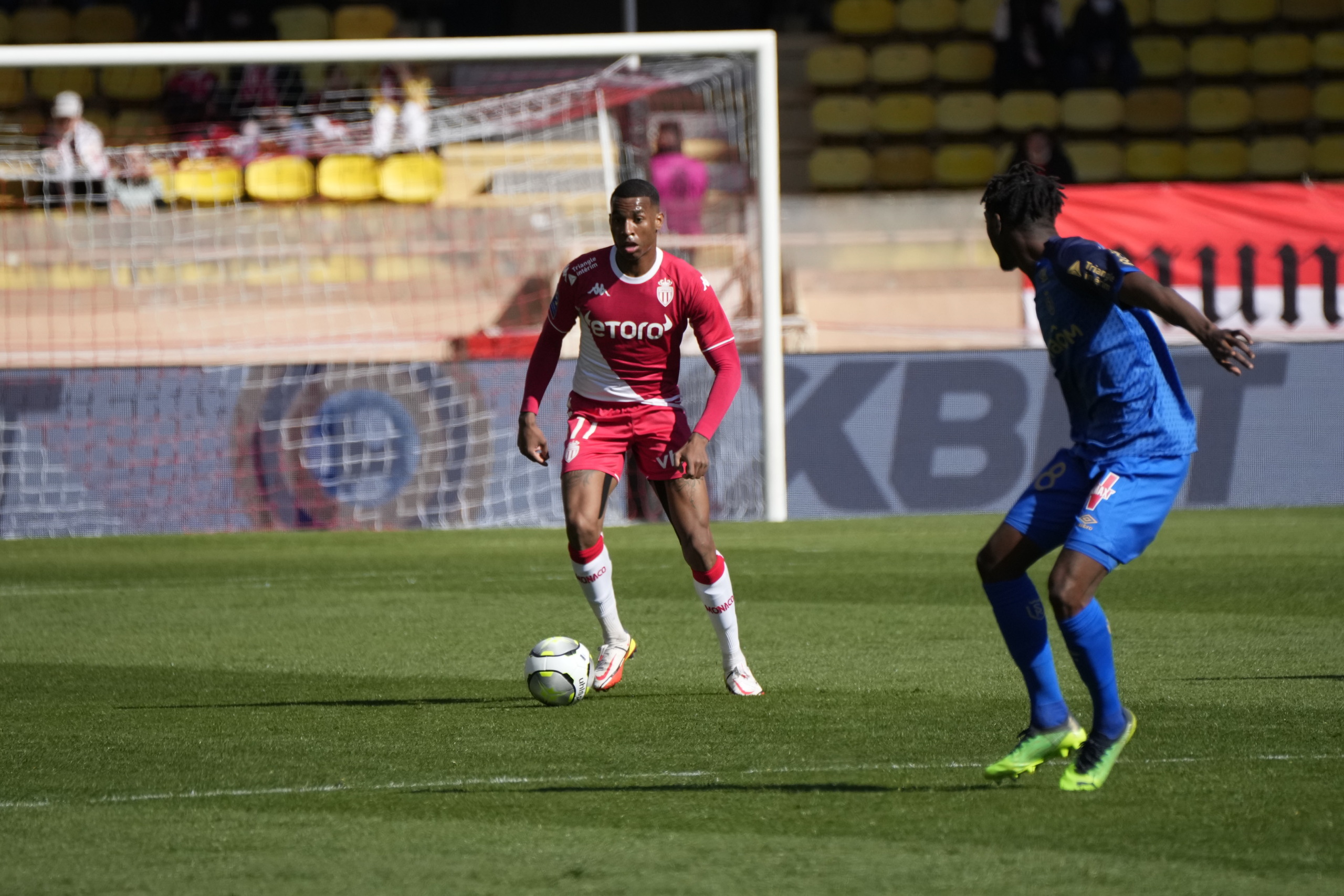 Этот матч по причине дисквалификации были вынуждены пропустить Орельен Тчуамени и Кайо Энрике. Их места в составе заняли Юссуф Фофана и Исмаил Якобс, а сыграли монегаски по схеме 4-1-4-1, которая стала для команды уже привычной. Эти две замены не сбили с толку «красно-белых», ведь они сразу бросились в атаку и даже были близки к тому, чтобы открыть счет уже на 6-й минуте игры. Желсон Мартинш послал мяч в сетку ворот, но его гол был отменен из-за офсайда.