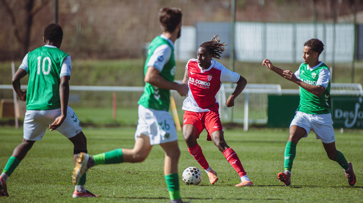 C’est dans cette optique que les Rouge et Blanc ont démarré la rencontre avec intensité. Après une première incursion de Joan Tincres dans les premiers instants du match, c’est Oumar Konaté qui a fait parler sa vitesse sur le côté gauche. Dévié en corner par un défenseur, son centre en retrait aurait aussi pu achever sa route dans la cage gardée par l’expérimenté Brice Maubleu (5e). De l’autre côté du terrain on notait une première intervention d’Ethan Schulz qui bloquait tranquillement un premier tir stéphanois.